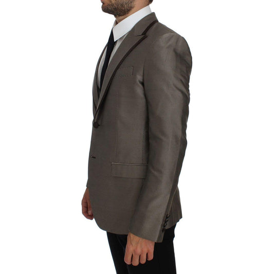 Dolce & Gabbana Brown Slim Fit Silk Two Button Blazer