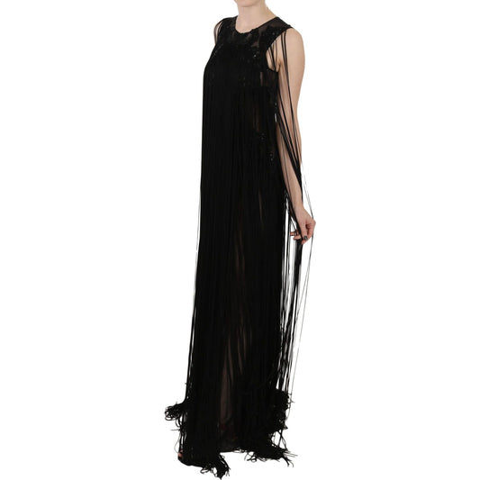 John Richmond Black Silk Beaded Sequined Sheer Dress