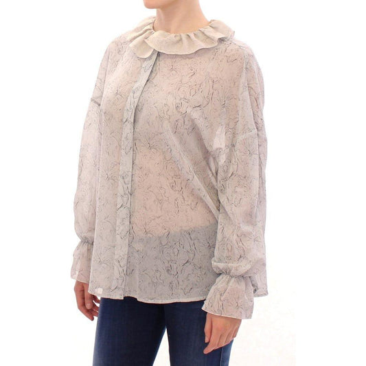 Arzu Kaprol Gray Blue Silk Sleeveless Top Shirt Blouse